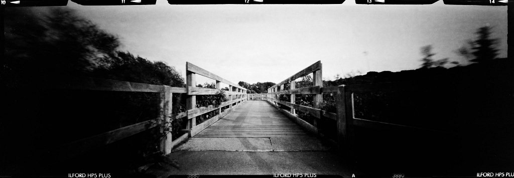 So with this set up I can shoot 6×6, 6×12 and 6×17 and all at three different focal lengths. But he also included two more front pinhole panels for shooting what Ralph Man calls “TSP”. Which stands for Twin Shot Panorama. Basically I can shoot a wide scene split over two frames using the two outer pinholes on the board. Pretty clever too! And it’s simple once you get into it. Simply compose your scene, take one photograph with the far left pinhole, advance to the next frame and take another photograph using the far right pinhole and you should end up with a “TSP”. Like this. Two 6×6 photographs side by side.