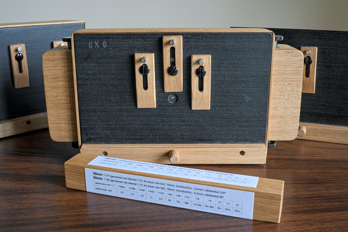“The Mania MFZ (Multiformat Zoom) is the first modular and fully compatible pinhole camera system. It offers a variety of film formats: from 6×6, 6×12 and 6×17 cm (with 120 roll film) up to 4×5 inches. You can also vary the hole aperture distance (comparable to the focal length of lens cameras) in 20 mm steps from 35 mm to 135 mm (theoretically to infinity). This allows you to influence the angle and perspective of your images in a targeted manner.